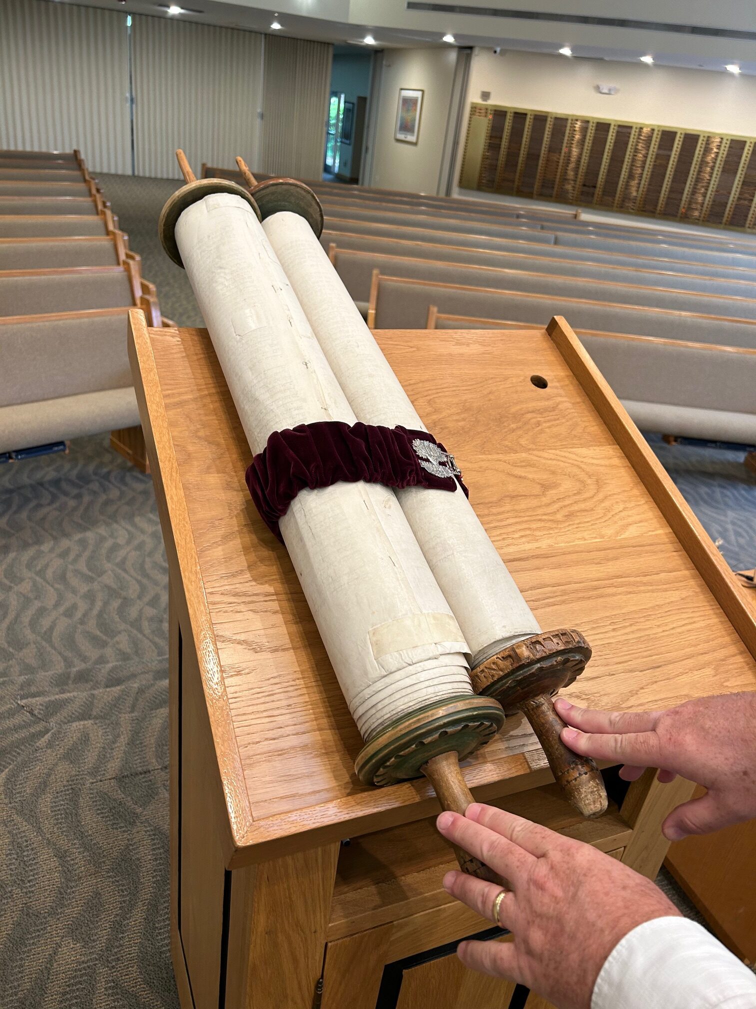 Temple Beth Torah received Scroll #855. This scroll is one of six scrolls in the Memorial Scrolls collection with a provenance originating in Humpolec.