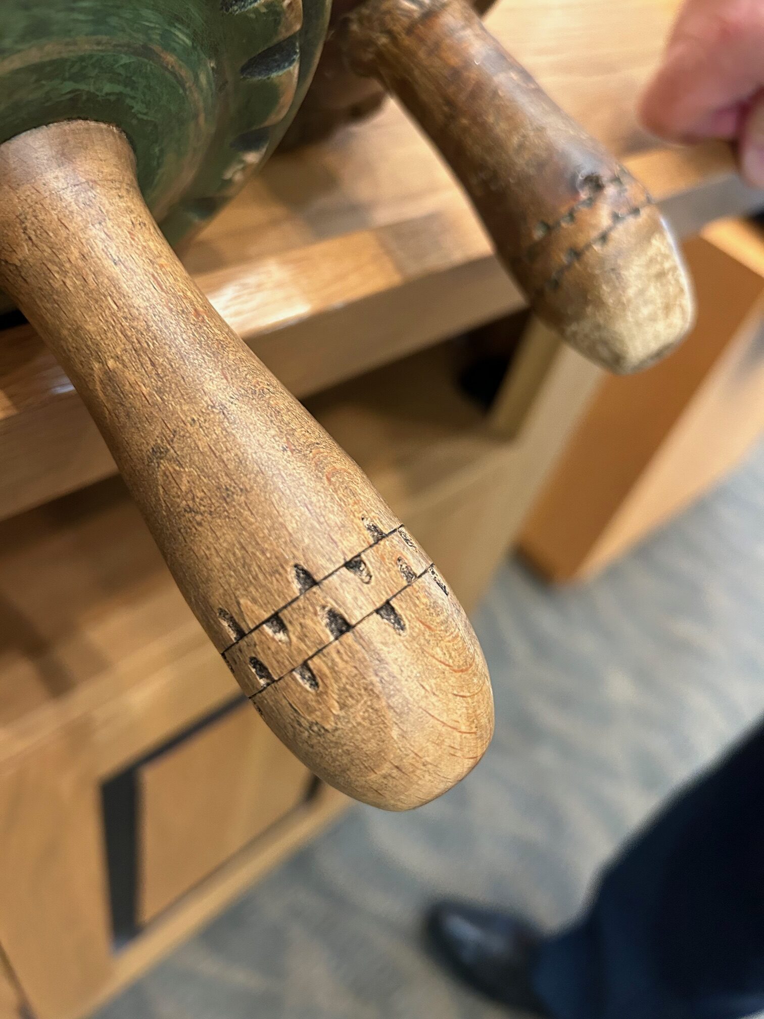 Below are other photos of Scroll #855 showing the unique rollers and other details. The Hebrew inscription on one of the rollers has been translated to: “In Memory of Reb Yeshaya, son of Reb Leizer. His Righteous name should be a blessing.”