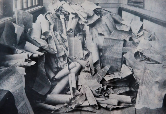 These artifacts stand as testaments to the resilience of Jewish culture through the adversities imposed by Nazism and Communism. So, now we know that the scrolls are rare not just because many in the collection are hundreds of years old, but because they were rescued from the terror and destruction of the Holocaust (1941-1945). They are, in most cases, the last remnant of the communities that lived in the towns of Moravia and Bohemia. In the years immediately after the Nazis seized power in Germany, there was a systematic persecution of the Jewish people. Boycotting Jewish shops, segregating Jewish people from the rest of society, limits on their freedoms and basic human rights were enforced.